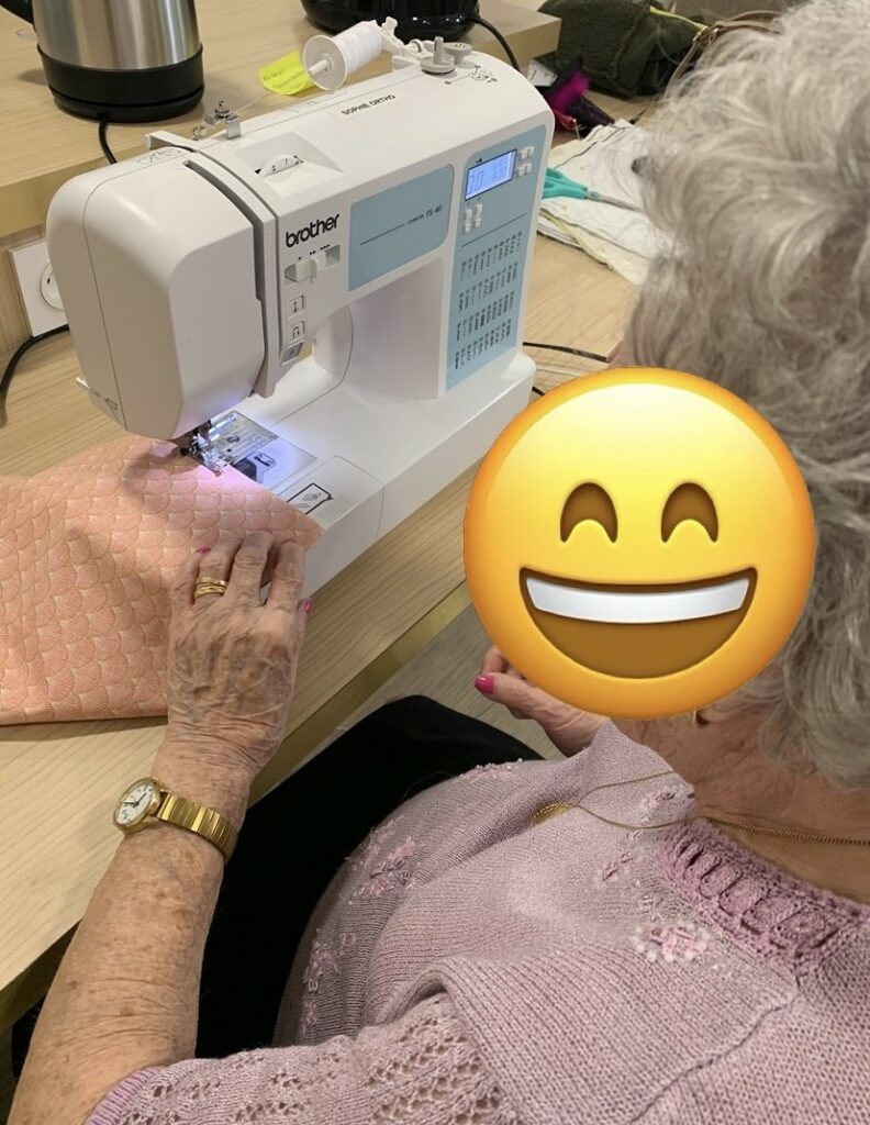 Avant tout, ce projet a pris une dimension particulière grâce à l’implication d’une résidente, ancienne couturière. Il faut dire que sa machine à coudre personnelle a permis de transmettre un savoir‑faire précieux. Ainsi, elle a partagé son expérience avec fierté et bienveillance. En somme, cette transmission intergénérationnelle renforce l’esprit familial qui caractérise l’EHPAD Les Jardins d’Ambroise.